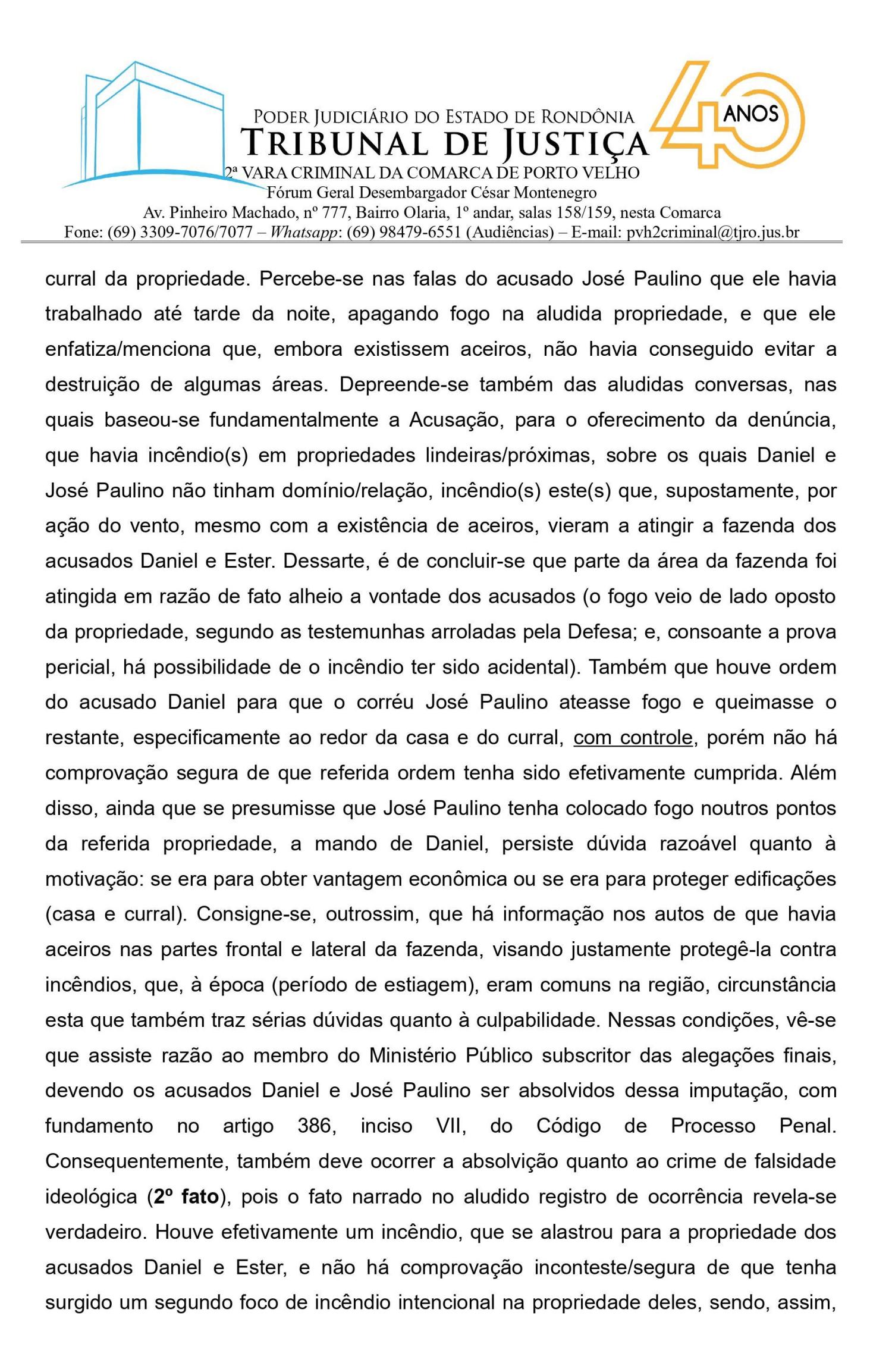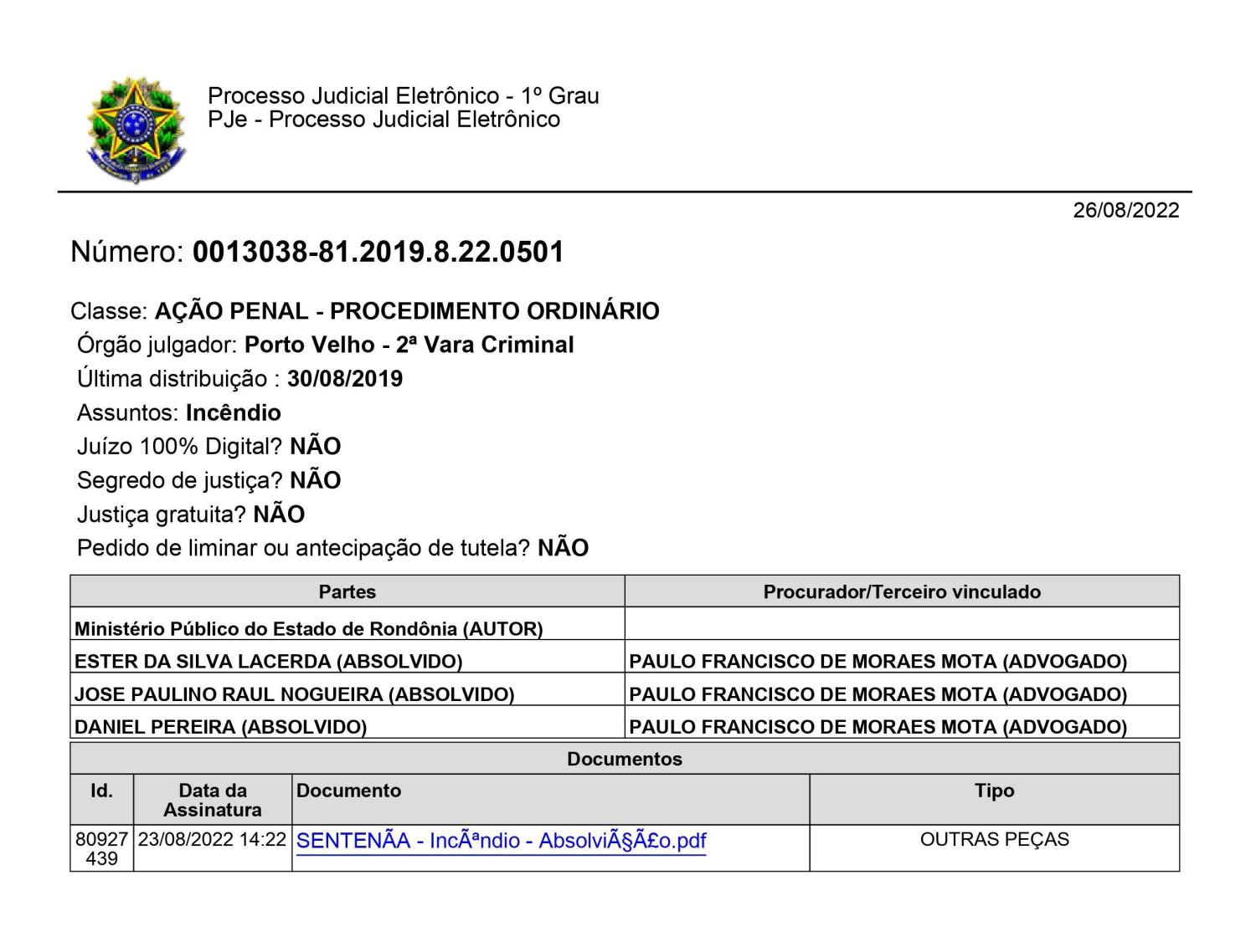 Veja abaixo a sentença expedida pela 2ª Vara Criminal de Porto Velho